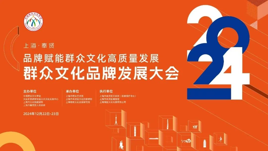 2024年12月22日至23日,由中国群众文化学会、文化和旅游部全国公共文化发展中心、上海市文化和旅游局、上海市奉贤区人民政府共同主办的2024群众文化品牌发展大会在九棵树(上海)未来艺术中心隆重举行。